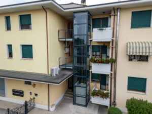 La piattaforma elevatrice è una soluzione pratica e sicura per spostarsi comodamente tra i piani, anche con la sedia a rotelle.
